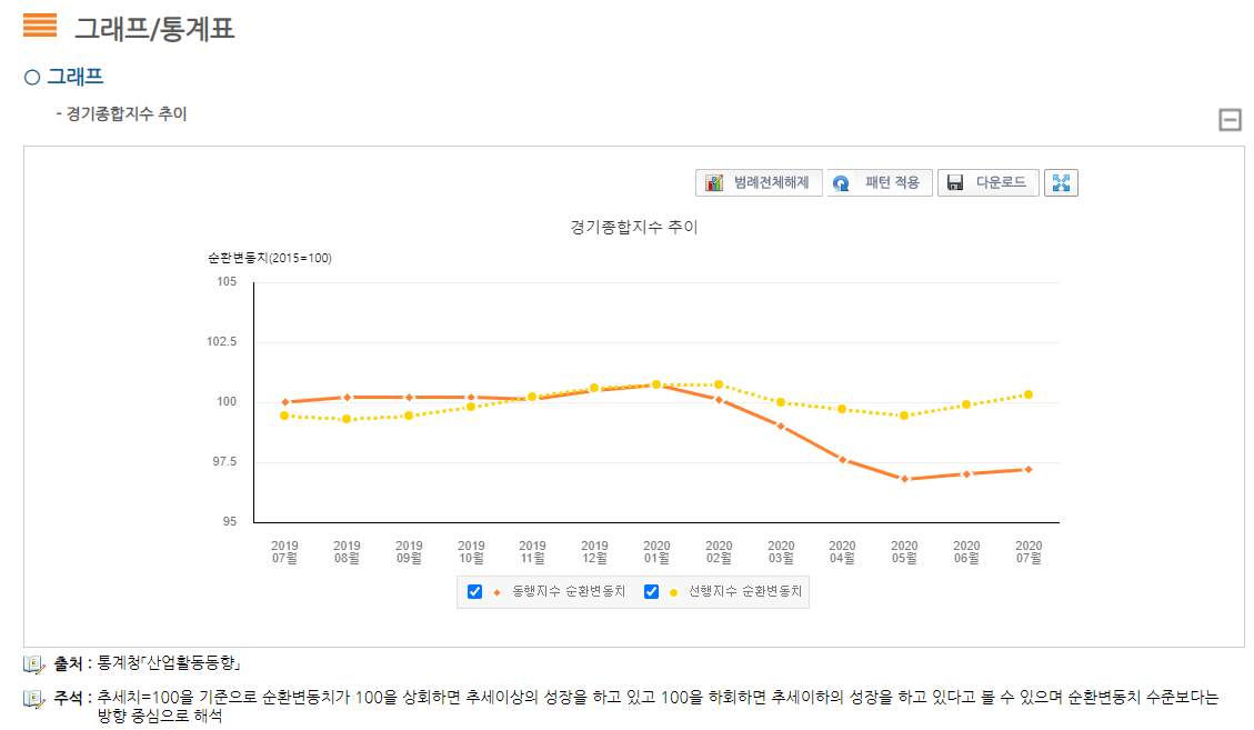 | 경제구분 | 선행종합지수 | 동행종합지수 | 후행종합지수 |